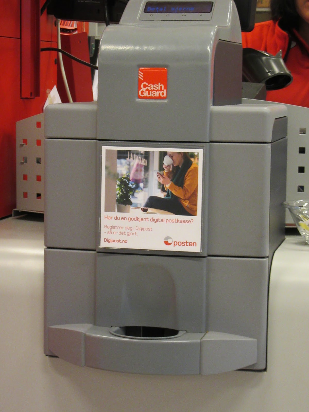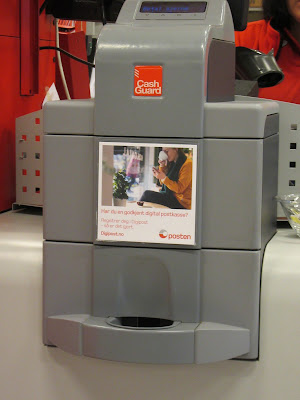 E por falar em dinheiro: em quase todas as lojas havia esta curiosa maquineta. A empregada metia o nosso dinheiro por cima e ela cuspia o troco, na parte de baixo!